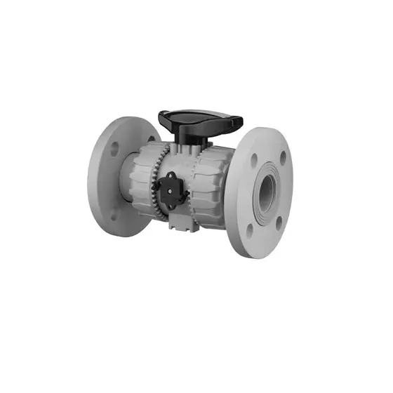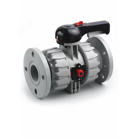 Valvola a sfera flangiata PVC-U tenute PTFE/FPM flange fisse UNI/ANSI e blocco maniglia